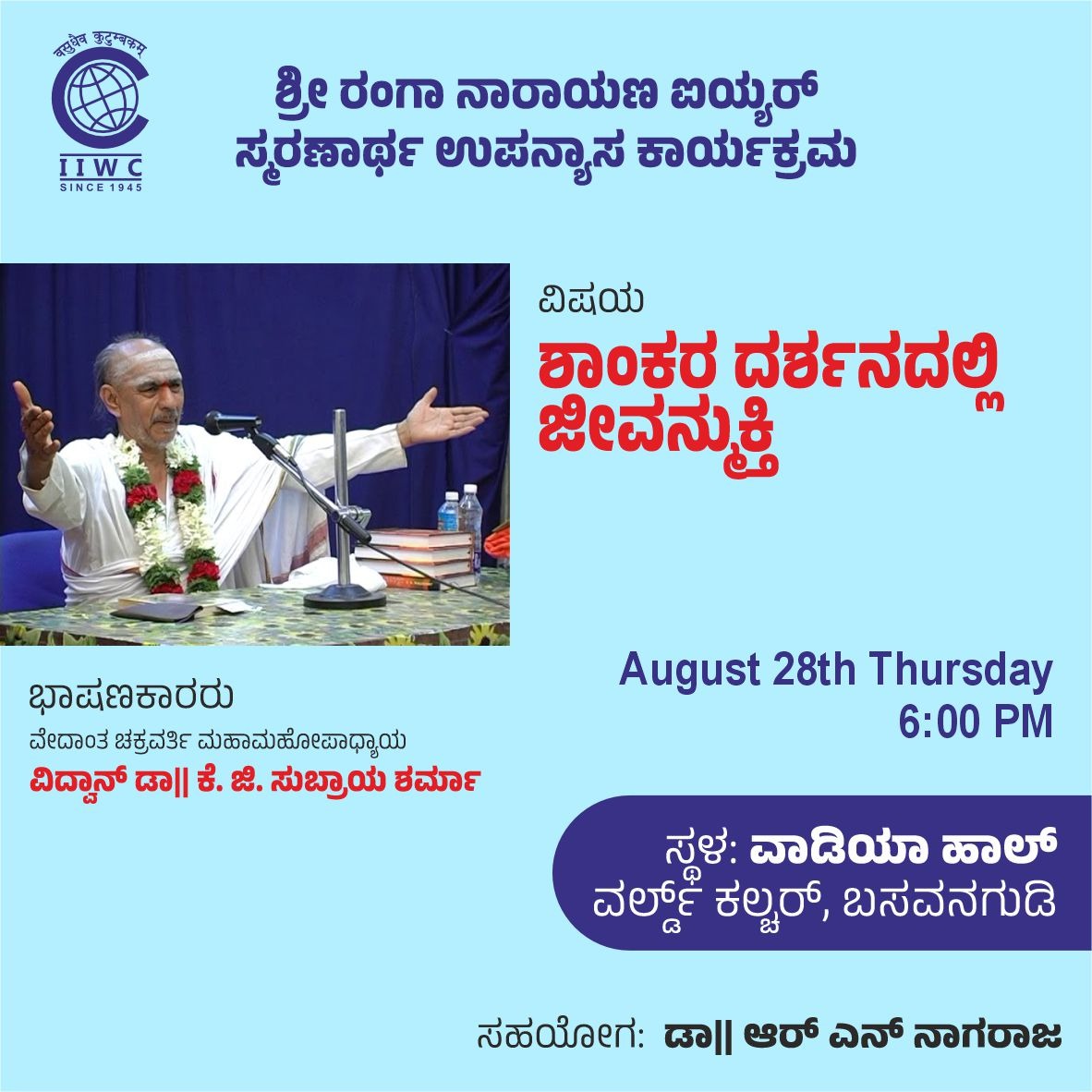 Wadia Hall The Indian Institute of World Culture, #6, Shri B P Wadia Road,, Bangalore, Karnataka, IndiaSri Ba. Na. Sundara Rao Memorial Lecture Programme