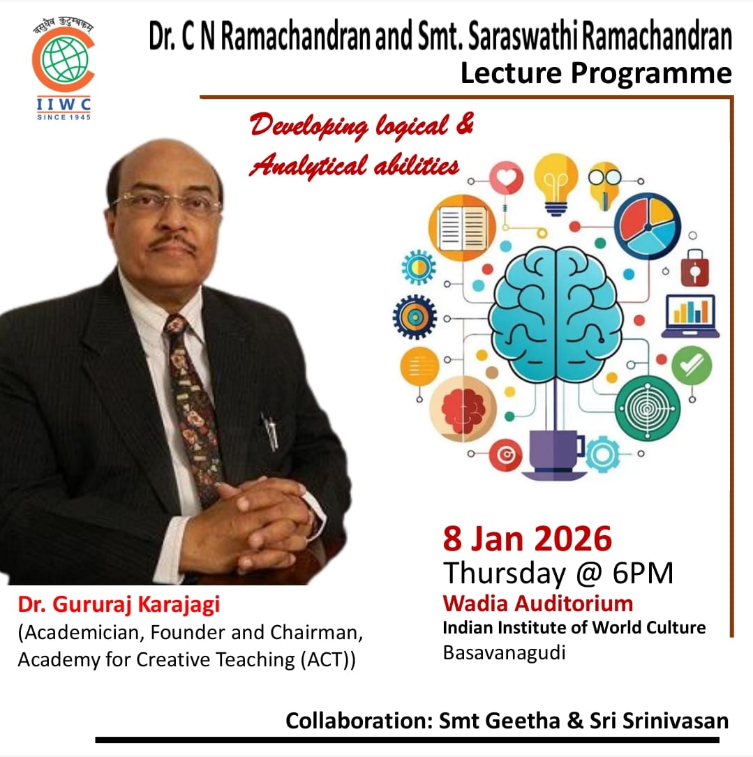 Wadia Hall The Indian Institute of World Culture, #6, Shri B P Wadia Road,, Bangalore, Karnataka, IndiaLecture Program