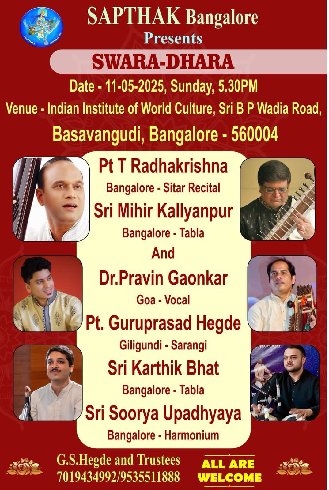 Smt. Subhadra Bai and Prof. B. S. Madhava Rao Memorial Programme Vocal : Vidwan Anoor Phaneendra Sharma Violin : Vidwan Aniruddha Bharadwaj Mrudanga : Vidwan Sai Vamshi Khanjira : Vidwan Sumukh Karanth Â